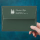 Bold Retro Green Mountain Wedding envelope with custom return address in script on the back flap and a tree illustration. This wedding envelope is part of a mountain wedding stationery suite with matching wedding invitations and more.