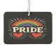 Show your true colors on the go with this vibrant and vintage-inspired PRIDE car air freshener! Featuring a bold rainbow arching over the word "PRIDE" in distressed white lettering, flanked by two bright red hearts and radiating lines, this design pops on a sleek black background. Perfect for Pride Month, parades, or everyday visibility, this air freshener is a powerful symbol of love, acceptance, and unity.