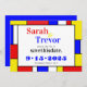 A fun and funky retro wedding invitation that's as fun as you are - a nostalgic look to the mid Sixties with a cool bold font paired with primary colors of yellow, blue and red outlined in black in geometric shapes in the style of Mondrian.