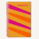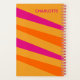 Groovy 1970's retro vintage monogram custom notebook. Bold stripes in orange, pink and mustard. Personalize this stylish trendy colorful script typography.