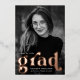 Celebrate your graduate's milestone with these stylish and elegant graduation announcements, featuring a vertical photo framed by bold rose gold foil "Grad" lettering. Personalize this chic photo announcement by adding the graduate's name, school, and graduation year for a custom touch. The back of the announcement displays a unique black and white retro arch pattern, adding a timeless and modern flair. Perfect for both high school and college graduates, this rose gold foil graduation announcement combines sophistication with a pop of luxury to make your announcement stand out.