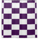 Add a striking accent to your bathroom with a custom shower curtain featuring a bold checkered pattern comprised of royal purple and white rectangles.
