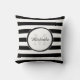 Bold Rugby Stripes With Monogram and Name in Black Throw Pillow
