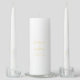 Classic style wedding unity candle featuring a simple yet elegant design with your names in script and your event details in a serif font.