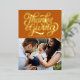 Bold Script Orange Happy Thanksgiving Photo Foil Holiday Card