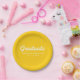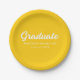 Add a personalized touch to your graduation party with custom graduation paper plates! The stylish paper plates feature "Graduate" in bold white script lettering with a yellow background or color of your choice. Personalize the yellow graduation plates by adding the graduate's name and graduation year.