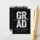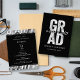 Modern GRAD In Faux Silver Faux Foil Bold Typography On Black Background, Class of 2024/2025, Chic, Classy and Stylish Graduation Party Invitation Enclosure / Insert Card.