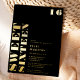 Bold simple real gold foil on black sweet 16 birthday party celebration invitation written in oversized bold font
