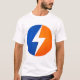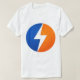 Make a statement with this bold, high-energy lightning bolt logo design. Featuring a sharp white bolt cutting through a split blue and orange circle, this graphic delivers a modern, powerful look that stands out on any shirt.
