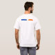 The shirt is good quality and fits just fine, but the colors of the printing are not as bright as in the sample photo. Not the best. The colors are a lot brighter in the sample photo; when I received the shirt they appeared faded. The red looks a little more pink and the blue is a lot lighter. N.B. I did not wash the shirt yet.