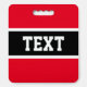This sporty design features athletic text ready to personalize inside a wide horizontal center black stripe highlighted with white pinstripes against bright red outer stripes.