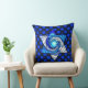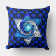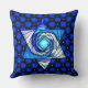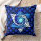 This extra plump & cushy throw pillow will be a real stand-out in whatever room you place it! Featuring digital artist, Leslie Sigal Javorek's popular original painting of a swirling, leaded, stained glass Star of David in vibrant gradients going from white to deep cobalt blue, backed by a dramatic repeating pattern of black, ultramarine & yellow. See Jewbilee's coordinating pillows & other home decorating accessories. #zazzlemade