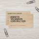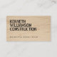 Your name or business name is shown in a bold, stencil-style font on a maple plywood background image on this construction or builder's business card template. The aesthetic is carried over onto the back of the card. © 1201AM CREATIVE
