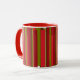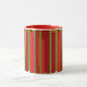 This simple yet decorative placemat features a colorful retro abstract pattern of bold geometric stripes in colors of red, orange, brown, olive green, black and tan.