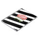 This stylish notebook features bold black diagonal stripes, a placard for text and a vintage image of pink hydrangeas. Personalize with your name or other special text.