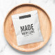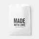 Stylish favor bag with the word "Made with Love" in bold font and a stylish script for your name or store name in black. It's great for your handmade or homemade goods and favor gifts.