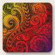 Durable meets dazzling! This hard plastic coaster features high-contrast doodles and a fiery gradient that adds instant flair to any drink station.