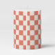 Bold terracotta and cream checkered pattern is made of rows of alternating beige and dark orange squares with a cream circle outlined in burnt orange containing a custom monogram. Add your initial in the sidebar to personalize it.