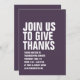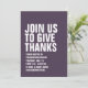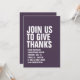 With bold white typography, this fall purple Thanksgiving dinner invitation is easily customized and sets the tone for a fun and casual turkey day feast