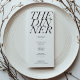 This bold black and white wedding menu card features bold typography and elegant serif font for your wedding menu. Perfect for a modern wedding or any other event, wedding with a black and white color theme or elegant wedding. On the back is room for your names and wedding date - or simply delete the text on the back.