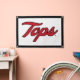 The Tops logo is rendered in a vibrant red, showcasing an energetic and bold cursive script that exudes confidence and movement. The sleek, rounded lines give it a friendly and dynamic look, suitable for representing sports teams, events, or athletic branding. The black outline provides a sharp contrast, emphasizing the smooth, flowing design of the text and ensuring its visibility. The overall feel of this logo suggests enthusiasm and spirit, making it memorable and engaging for fans and audiences alike.