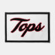 The Tops logo is rendered in a vibrant red, showcasing an energetic and bold cursive script that exudes confidence and movement. The sleek, rounded lines give it a friendly and dynamic look, suitable for representing sports teams, events, or athletic branding. The black outline provides a sharp contrast, emphasizing the smooth, flowing design of the text and ensuring its visibility. The overall feel of this logo suggests enthusiasm and spirit, making it memorable and engaging for fans and audiences alike.