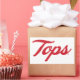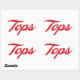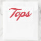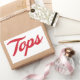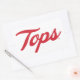 The Tops logo is rendered in a vibrant red, showcasing an energetic and bold cursive script that exudes confidence and movement. The sleek, rounded lines give it a friendly and dynamic look, suitable for representing sports teams, events, or athletic branding. The black outline provides a sharp contrast, emphasizing the smooth, flowing design of the text and ensuring its visibility. The overall feel of this logo suggests enthusiasm and spirit, making it memorable and engaging for fans and audiences alike.