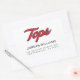 The Tops logo is rendered in a vibrant red, showcasing an energetic and bold cursive script that exudes confidence and movement. The sleek, rounded lines give it a friendly and dynamic look, suitable for representing sports teams, events, or athletic branding. The black outline provides a sharp contrast, emphasizing the smooth, flowing design of the text and ensuring its visibility. The overall feel of this logo suggests enthusiasm and spirit, making it memorable and engaging for fans and audiences alike.