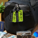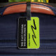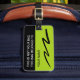 Clever bold custom luggage tags with words "not your bag". Designed for anyone to personalize and have your baggage stand out while you're traveling, at the gym or anywhere you want to put an ID tag you can customize.
