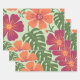 Bold Tropical Hibiscus & Monstera Leaf Wrapping Paper Sheets