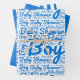 Enjoy this bold typography written pattern that has: Boy and Baby Shower written in english script in bold blue and white background. Plus, a solid, blue and a striped blue/white second and third sheet.