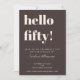 This modern 50th birthday invitation in brown features bold typography and a rich neutral color palette designed for a milestone celebration. The large “hello fifty” headline creates a strong focal point, paired with clean, minimal text that keeps event details clear and easy to read. Personalize the name, date, time, location, and RSVP information to match your event. A stylish option for celebrating a 50th birthday with a modern, timeless look.