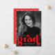 Stylish graduation announcements featuring the graduate's vertical photo with "grad" in bold red lettering. Personalize the photo graduation announcement by adding the graduate's name, graduation year, and school. The announcement reverses to display a red and white retro arch pattern.