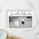 Bold typography Wedding Thank You photo with the text "Love and Thanks". The backside includes a diagonal striped pattern with black and white stripes and your photo.