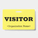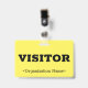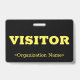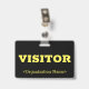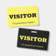 This eye-catching badge design features the message "VISITOR", and a customizable company name or other custom message. A badge like this could perhaps be used to indicate that a person is a known and authorized guest or visitor at a business or workplace. [~Z0000307]