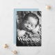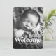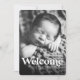 A bold vintage-style "welcome" against a vertical photo makes a sweet and stylish way to introduce your new baby. With room for name and stats on the front with the photo, the back of this birth announcement is a sweet dotted dusty light blue (color can be changed by clicking "customize"). Perfect for cool new parents to introduce their new little girl with a bit of modern vintage flair!