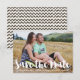 An elegant and modern photo save the date flat card featuring bold modern calligraphy with event details. Personalize this save the date announcement by adding your own photo and details.