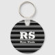 Bold White Monogram & Name, Lt Grey Lines on Black Keychain