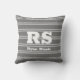 Bold White Monogram & Name, Lt Grey Lines on Grey Throw Pillow