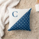 Bold White on Blue Polka Dot Pattern Monogram Throw Pillow