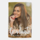 Graduate is written in bold white handwritten script over your senior portrait photo makes a chic, modern graduation garden flag. Customize this sign with your high school or university class year 2025 under the bold typography and add a cute full photograph of your senior.