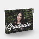 Celebrate your graduate's achievement with a personalized graduation photo keepsake. The photo block features the graduate's horizontal photo with "Graduate" in a bold white script. Personalize the graduation photo block by adding the graduate's name, school, and graduation year.