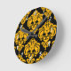 Bold Yellow & Black Damask Modern Personalized Round Clock