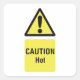 Bold Yellow Caution Hot Sign Safety Square Sticker