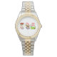 The watch is very nice, the picture is great and the watch looks like quality. The only problem I am having with it is that it is a little too large, and I also can't figure out how to open the clasp. No directions came with it. Very good. The printing is perfect and the watch keeps good time.