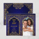 Bollywood Arabian Nights theme design with gold glitter and foil effect save the date postcard with photo insert.