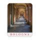 View of one of the famous arcade walkways in the city of Bologna in Italy printed on a souvenir fridge magnet.