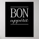BON APPETIT Black Kitchen Dinner Quote Poster