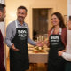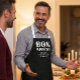 French language apron with the words Bon Appetit and the customizable welcome expression of your choice.