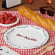 "Bon Appetit" Paper plates. "Bon Appetit" is written in Center as well as it makes circular shape.